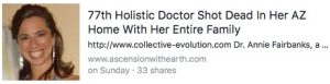 I awoke one morning recently, to this shocking Facebook post: 77th Holistic Doctor Shot Dead In Her AZ Home With Her Entire Family.
